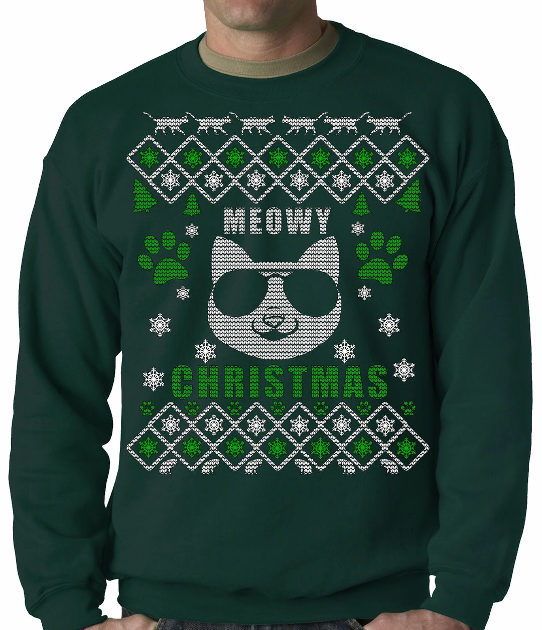 Bewild Meowy Christmas – ���Cool Cat With Glasses��� Ugly Christmas Adult Crewneck