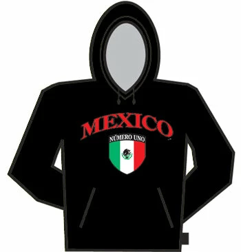 Mexico Numero Uno, You will be able to picture yourself walking anywhere in this Black Hooded 50/50 Sweatshirt. Designed for warmth and durability the 7.5 ounce, 50/50 blend fleece fabric with double-ply hood provides protection from a blinding snow storm at the North Pole or from blowing sand in the Mojave Desert. This hooded sweat is versitility plus. The convenient pouch pocket keeps hands warm or holds a water bottle. The matching drawstring and metal grommets on the hood make sure it stays where it belongs. The set-in sleeves, ribbed cuffs and banded bottom all keep this shirt together in a way that makes durability its middle name.