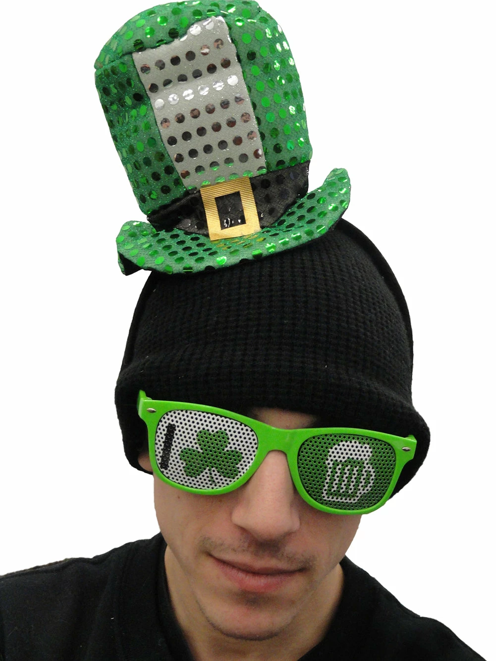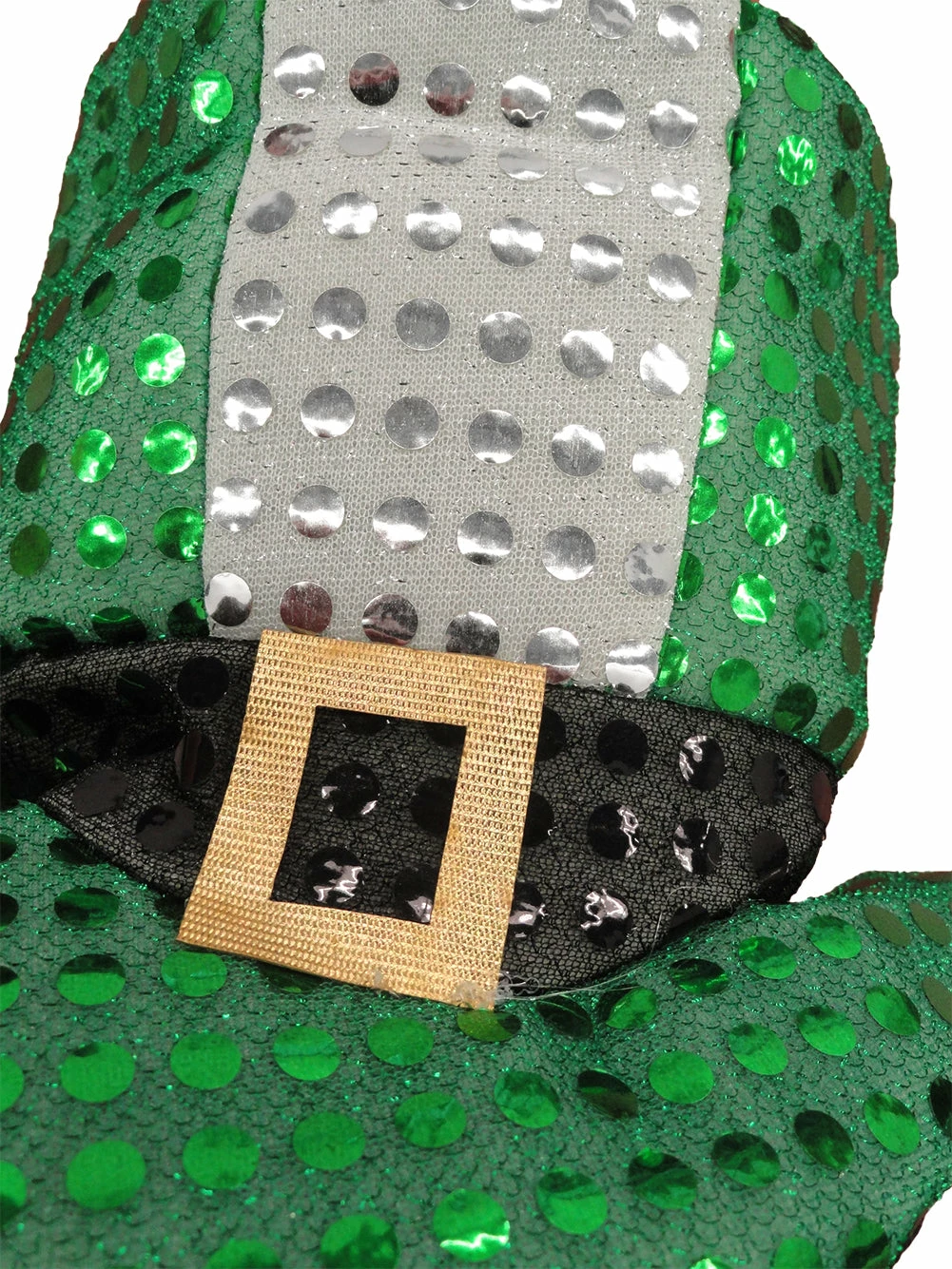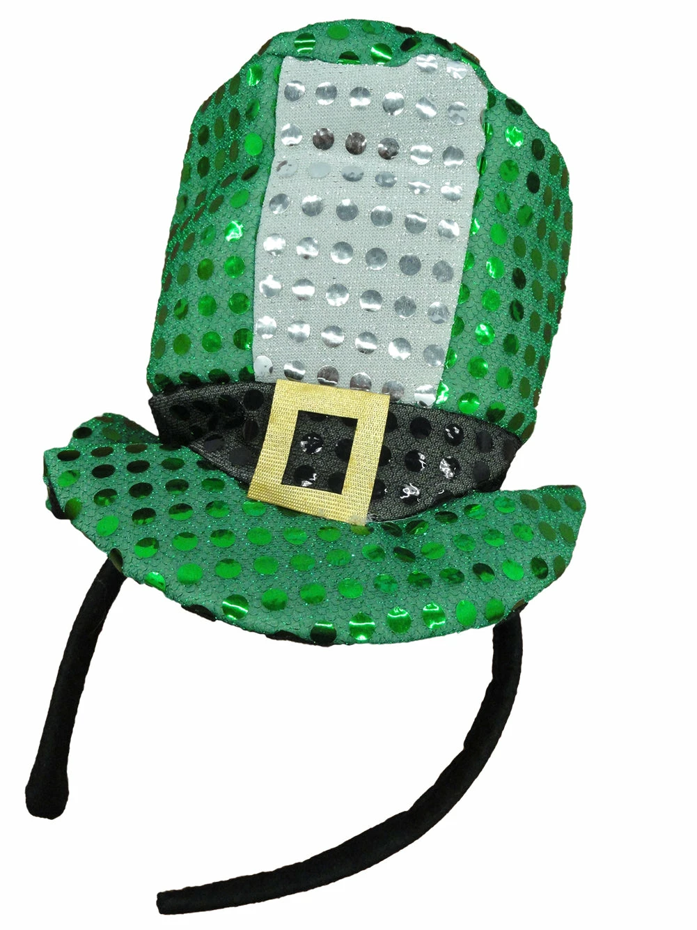 This festive Mini Sequin Top Hat Headband is the perfect addition to your holiday greens! Wear this hat with Irish Pride, you are sure to stand out in the crowd. This headband features a mini top hat with hundreds of green and white sequins. This headband is unisex, one size fits all for adults!