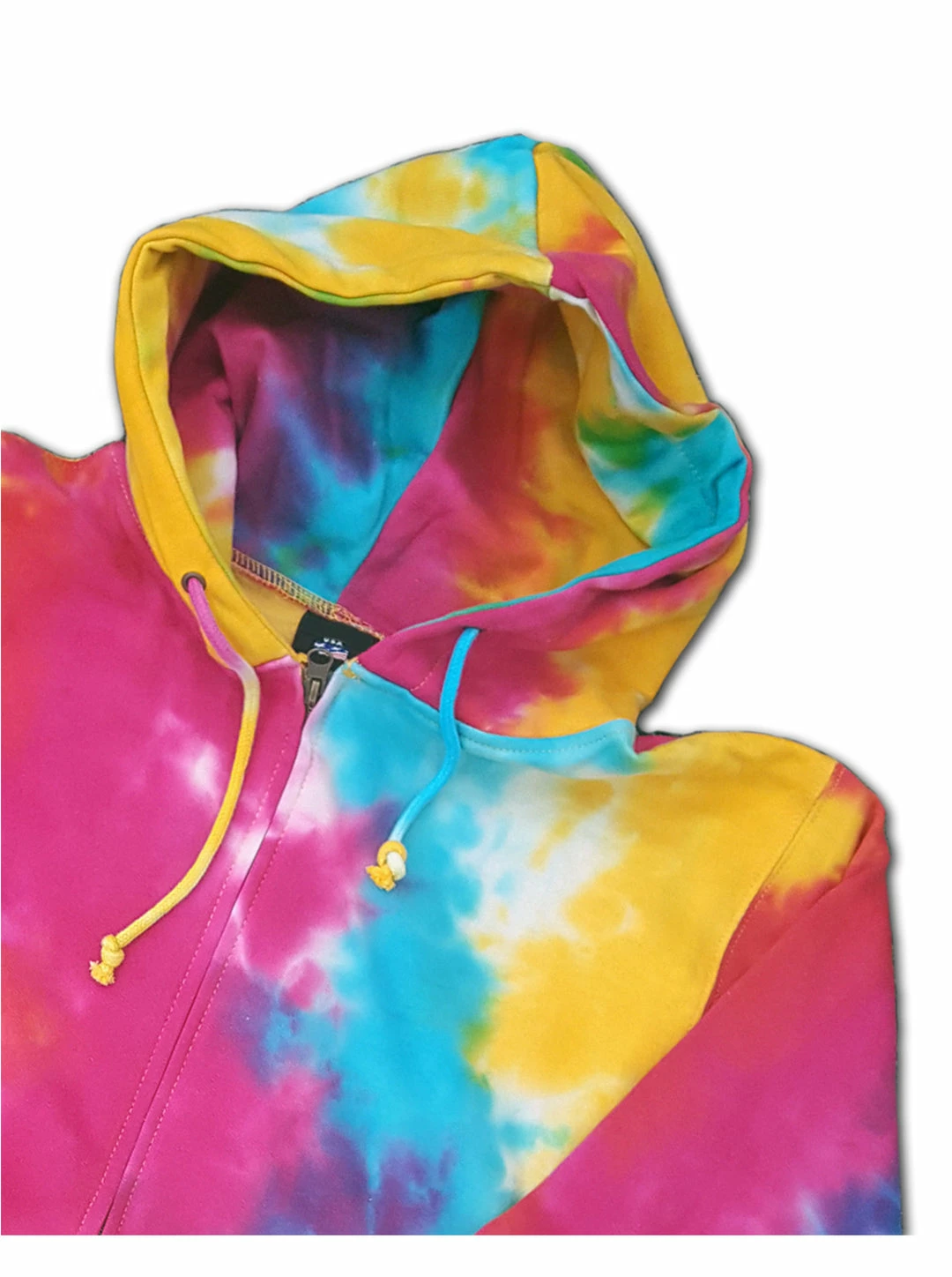 Bewild Multicolor Tie Dye Zip-Up Adult Size Hoodie Sweatshirt With Full Zipper