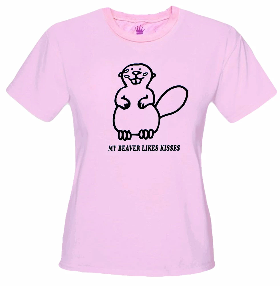 My Beaver Likes Kisses Girls T-Shirt. Exclusively from Bewild.com, these new tee’s feature hard-core sayings that say it all. From “Lick Here For Full View” to “Skanky white-trailer trash”. How about a t-shirt that says “Dip me in Chocolate and throw me to the lesbians?” Our short sleeve “My Beaver Likes Kisses” t-shirts are made from a 100% fully machine washable preshrunk cotton for a cool and comfortable fit every time.