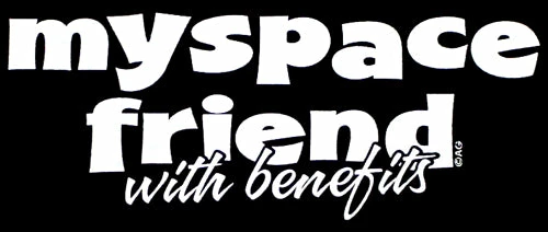 Myspace Friend With Benefits T-Shirt. Exclusively from Bewild.com, these new tee’s feature hard-core sayings that say it all. From “Lick Here For Full View” to “Skanky white-trailer trash”. How about a t-shirt that says “Dip me in Chocolate and throw me to the lesbians?” Our short sleeve “Myspace Friend With Benefits” t-shirts are made from a 100% fully machine washable preshrunk cotton for a cool and comfortable fit every time.