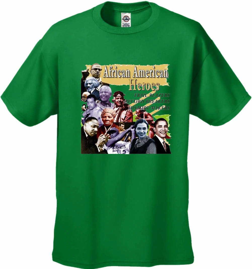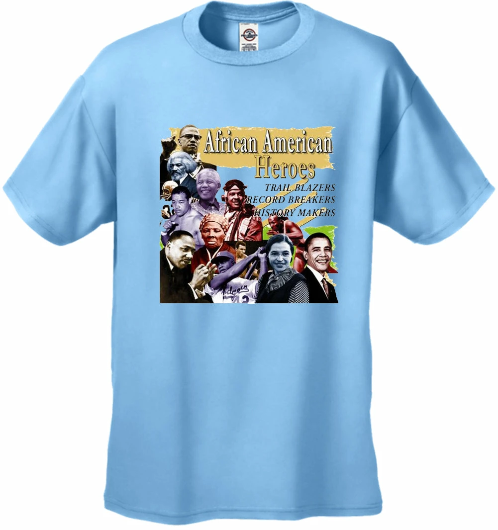 African American Heroes features a classic 100% Cotton style is a great choice for anyone. These African American Heroes Men’s T-Shirt have been printed with image on the front. These t shirts are made from heavyweight 6oz. 100% Preshrunk cotton. Looks Great, Priced right – and gets better with each washing.
