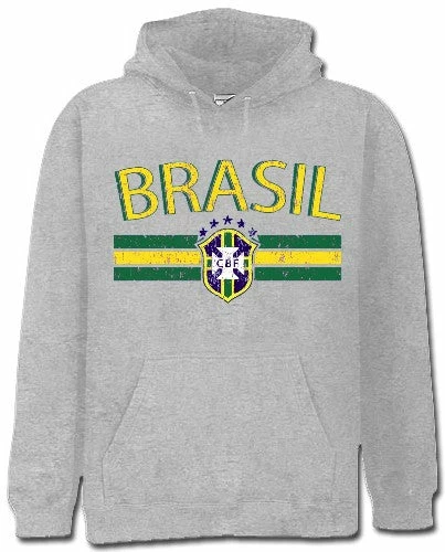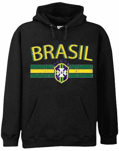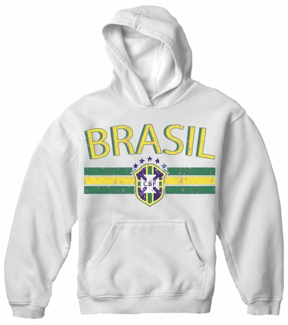 Brasil Vintage Shield International Mens Hoodie. Show pride for your favorite Nation! Our collection of deluxe vintage international print Hoodies are the perfect way to support your home country. Each shirt features premium vintage style designs made to look distressed for that soft “Favorite Old Sweatshirt” look from day one. These shirts are perfect whether you are rooting for your favorite soccer nation or just showing your love for a special country. Bold athletic style writing spells out each country’s name curved above the country’s national shield; a classic design that is sure to display your patriotism! Each shirt is printed to order on a deluxe hooded sweatshirt in your choice of color.