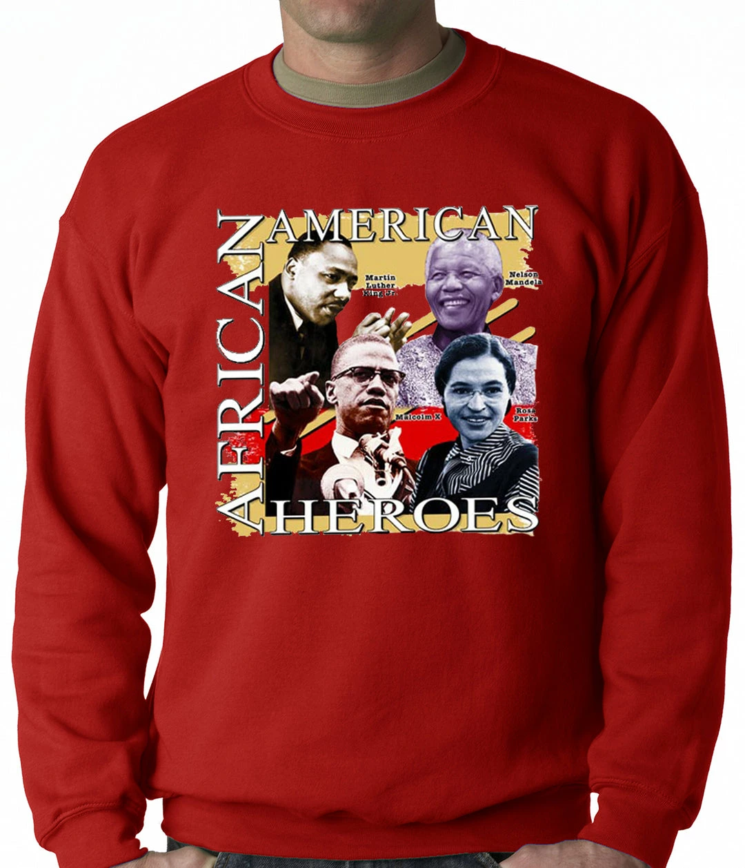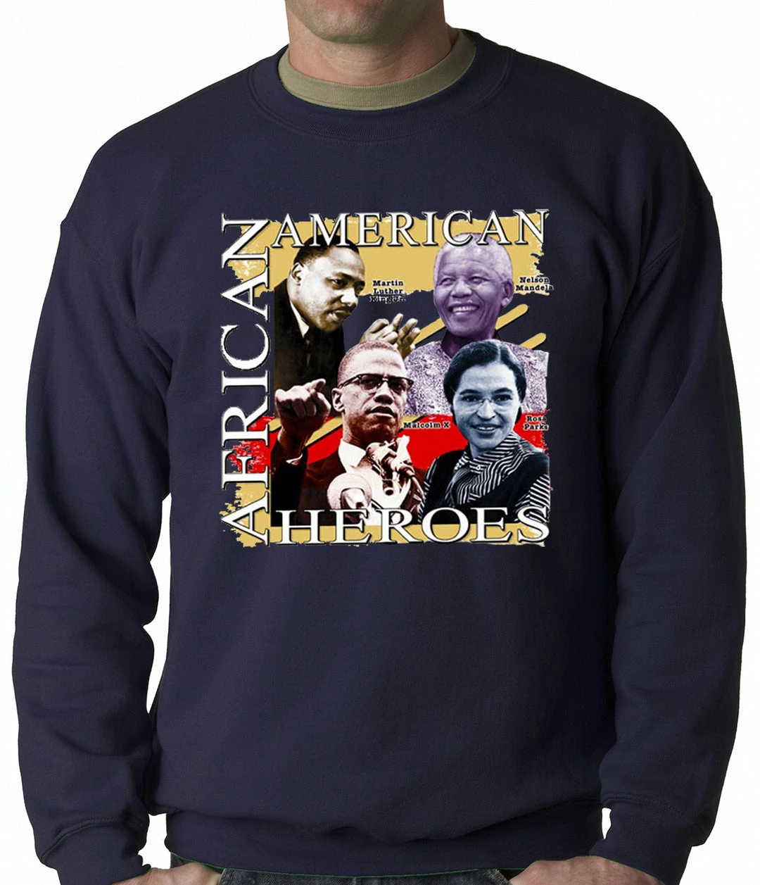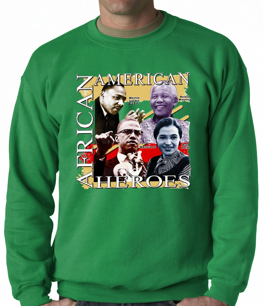 Bewild Nationality & Ethnic Full Color African American Heroes Adult Crewneck