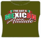 Mexican Attitude Girls T-Shirt. Exclusively from Bewild.com, these new tee’s feature hard-core sayings that say it all. From “Lick Here For Full View” to “Skanky white-trailer trash”. How about a t-shirt that says “Dip me in Chocolate and throw me to the lesbians?” Our short sleeve “I’ve Got A Mexican Attitue” t-shirts are made from a 100% fully machine washable cotton/poly blend for a cool and comfortable fit every time.