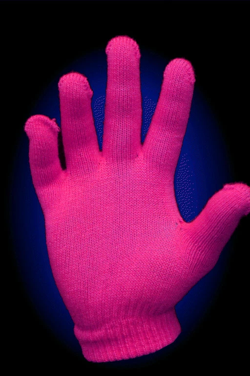 Super Glow Reactive Rave Gloves (Glows Under Black Light). Put these glove on and get your glow on! No neon party is complete with out a pair of these amazing florescent gloves. Designed for maximum dexterity you will be able to perform at your very best while wearing these gloves. Ravers and dancers know adding a blazing glow effect your your hands during a performance makes you stand out and make your moves more noticeable. You deserve the attention and these gloves will give you the reaction you are looking for. Our neon color gloves EXPLODE with vivid glowing color when exposed to UV light. These gloves are compatible with all other rave toys such as finger lights so you can have an amazing double glow effect. While others dance and fiddle around with toys you will have hands of glory bringing the crowd to you. You choose the color, you choose your toys. These gloves will give you or your dance troop the edge. Experience glowing hands today! Each set comes complete with 2 matching ambidextrous, one size fits all gloves.