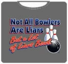 Not all Bowlers Are Liars T-Shirt. Exclusively from Bewild.com, these new tee’s feature hard-core sayings that say it all. From “Trust Me I’m A Doctor” to “Thats Mr. Asshole To You”. How about a t-shirt that says “I Scored High On My Drug Test” Our short sleeve t-shirts are made from a 100% fully machine washable cotton/poly blend for a cool and comfortable fit every time. On the front of this shirt it says “Not All Bowlers Are Liars, But Alot Of Liars Bowl”.