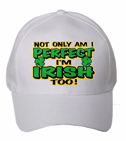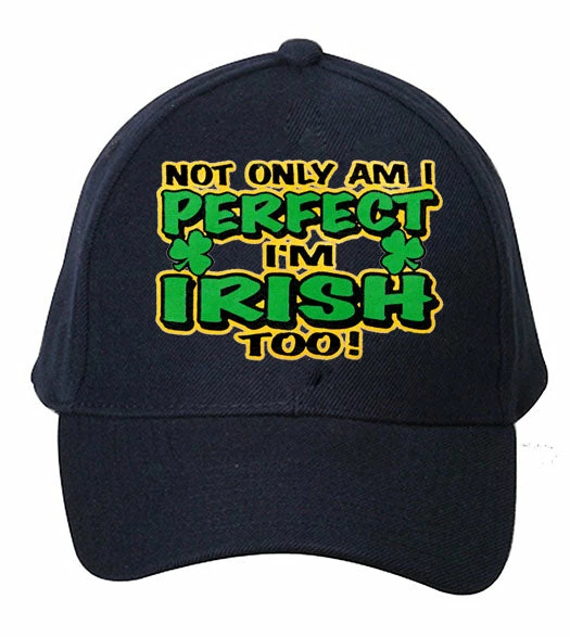 Not Only Am I perfect I’m Irish Too Baseball Hat Caps now avaible. Get this Not Only Am I perfect I’m Irish Too baseball hat featuring 100% cotton 5 panel construction, a pre – curved bill, triple stitched sweatband and adjustable Velcro closure.