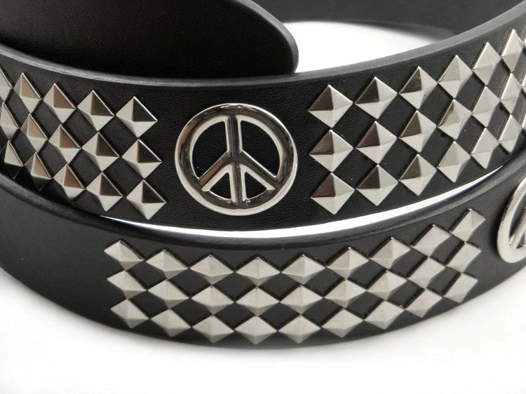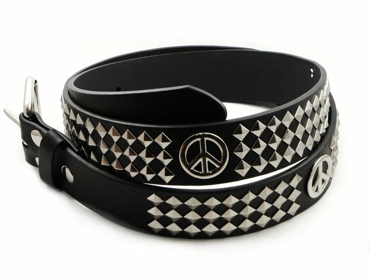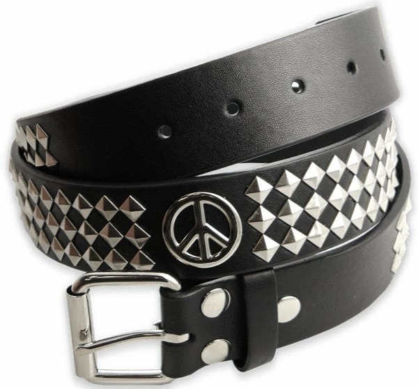 Bewild Peace Sign Pyramid Studded Leather Belt Belts