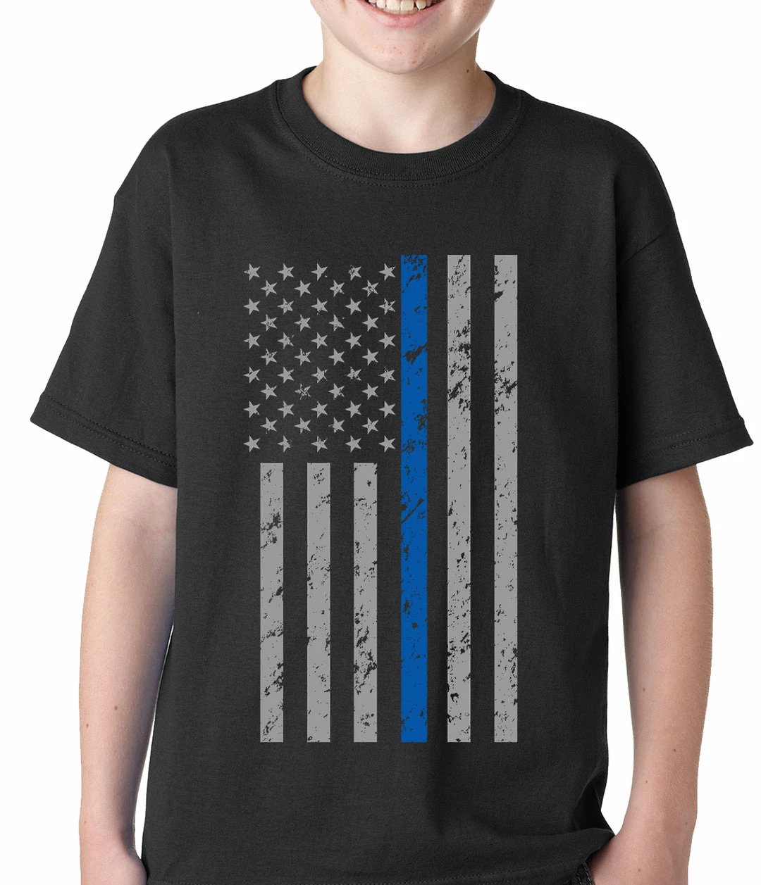 Bewild Police Thin Blue Line American Flag – Support Police Department Kids T-shirt