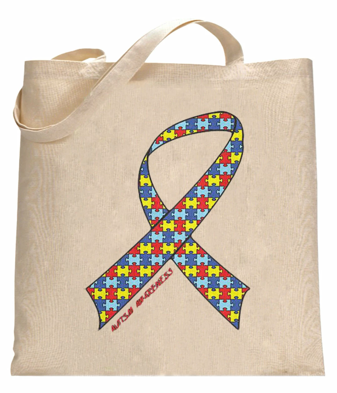 Bewild Positive Reinforcement Autism Awareness Ribbon Tote Bag