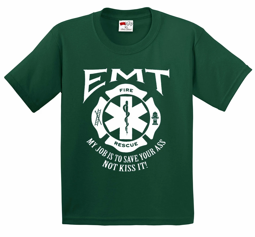 EMT’s Save Your Ass T-Shirt. The largest selection of funny and offensive novelty t-shirts are here! Our novelty t-shirts are funny and to the point and designed to look great and get the point across. Wear our selection of humorous joke shirts to a house party, school, the club or even just around the house. Each design has been hand selected by our team of humorist so you are sure to get all the laughs at your next event! Each design is printed on a comfy deluxe 100% cotton t-shirt in your choice of color.