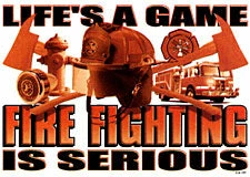 Fire Fighting Is Serious T-Shirt. Exclusively from Bewild.com, these new tee’s feature hard-core sayings that say it all. From “Trust Me I’m A Doctor” to “Thats Mr. Asshole To You”. How about a t-shirt that says “I Scored High On My Drug Test” Our short sleeve t-shirts are made from a 100% fully machine washable cotton/poly blend for a cool and comfortable fit every time. On the front of this shirt it says “Life Is A Game Fire Fighting Is Serious”.