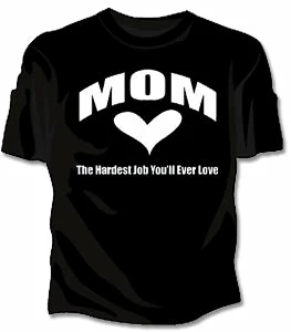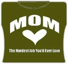 Mom The Hardest Job Girls T-Shirt. Exclusively from Bewild.com, these new tee’s feature hard-core sayings that say it all. From “Trust Me I’m A Doctor” to “Thats Mr. Asshole To You”. How about a t-shirt that says “I Scored High On My Drug Test” Our short sleeve t-shirts are made from a 100% fully machine washable cotton/poly blend for a cool and comfortable fit every time. On the front of this shirt it says “Mom. The Hardest Job You’ll Ever Love!”