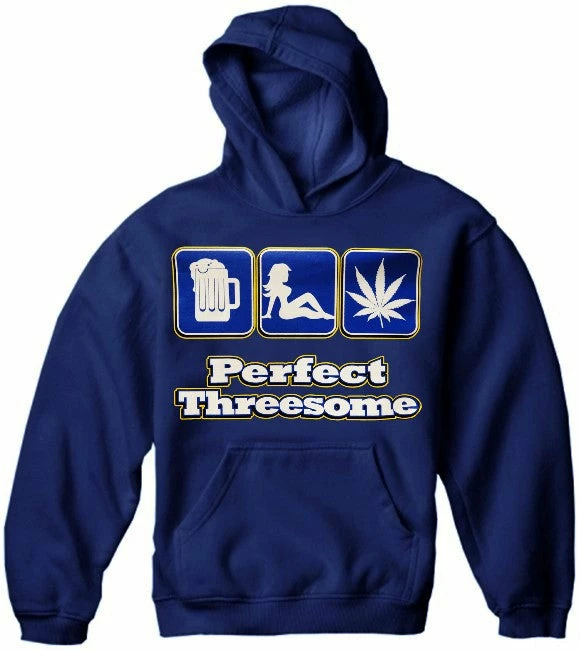 Pot Head & Stoner Sweatshirts – The Perfect Threesome Hoodie. We have the largest selection of pot head and stoner sweatshirts on the web so you can indulge in your “green” lifestyle! Each hoodie is designed to show your love for herb. All of our pot head and stoner hooded sweatshirts are printed on deluxe hooded sweatshirts with front pouch pocket in your choice of color. Makes a great gift for the smoker in your life! Don’t wait until 4:20 to pick yours up… These hoodies are awesome year round.