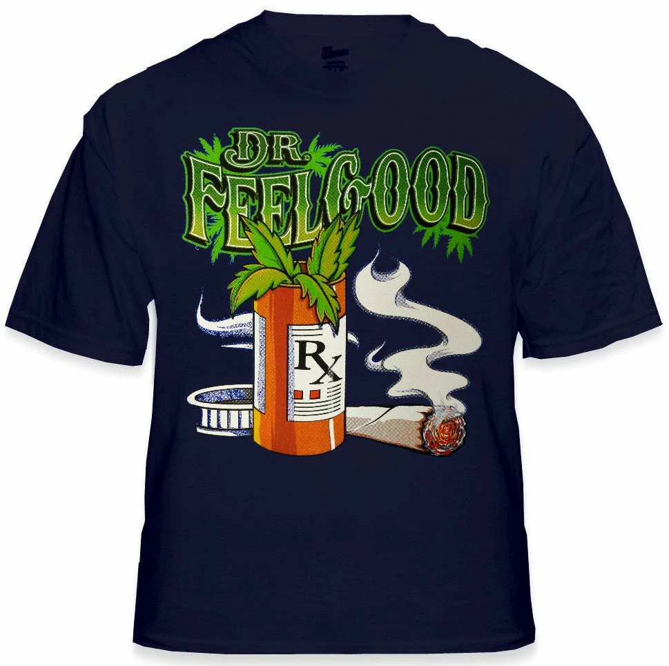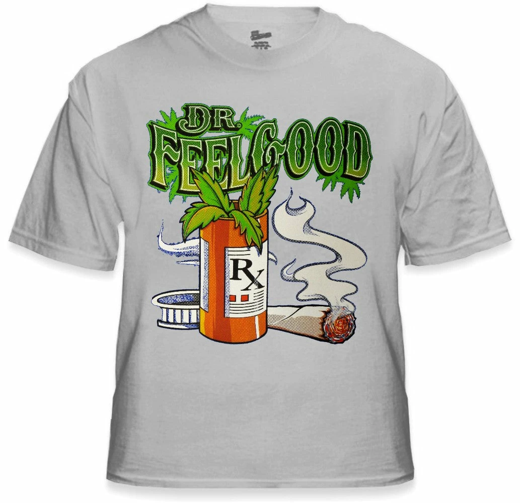 Pot Head & Stoner Tees – Dr.Feelgood T-Shirt. We have the largest selection of pot head and stoner t-shirts on the web so you can indulge in your “green” lifestyle! Each shirt is designed to show your love for herb. All of our pot head and stoner tees are printed on deluxe 100% cotton t-shirts in your choice of color. Makes a great gift for the smoker in your life! Don’t wait until 4:20 to pick yours up… These shirts are awesome year round.