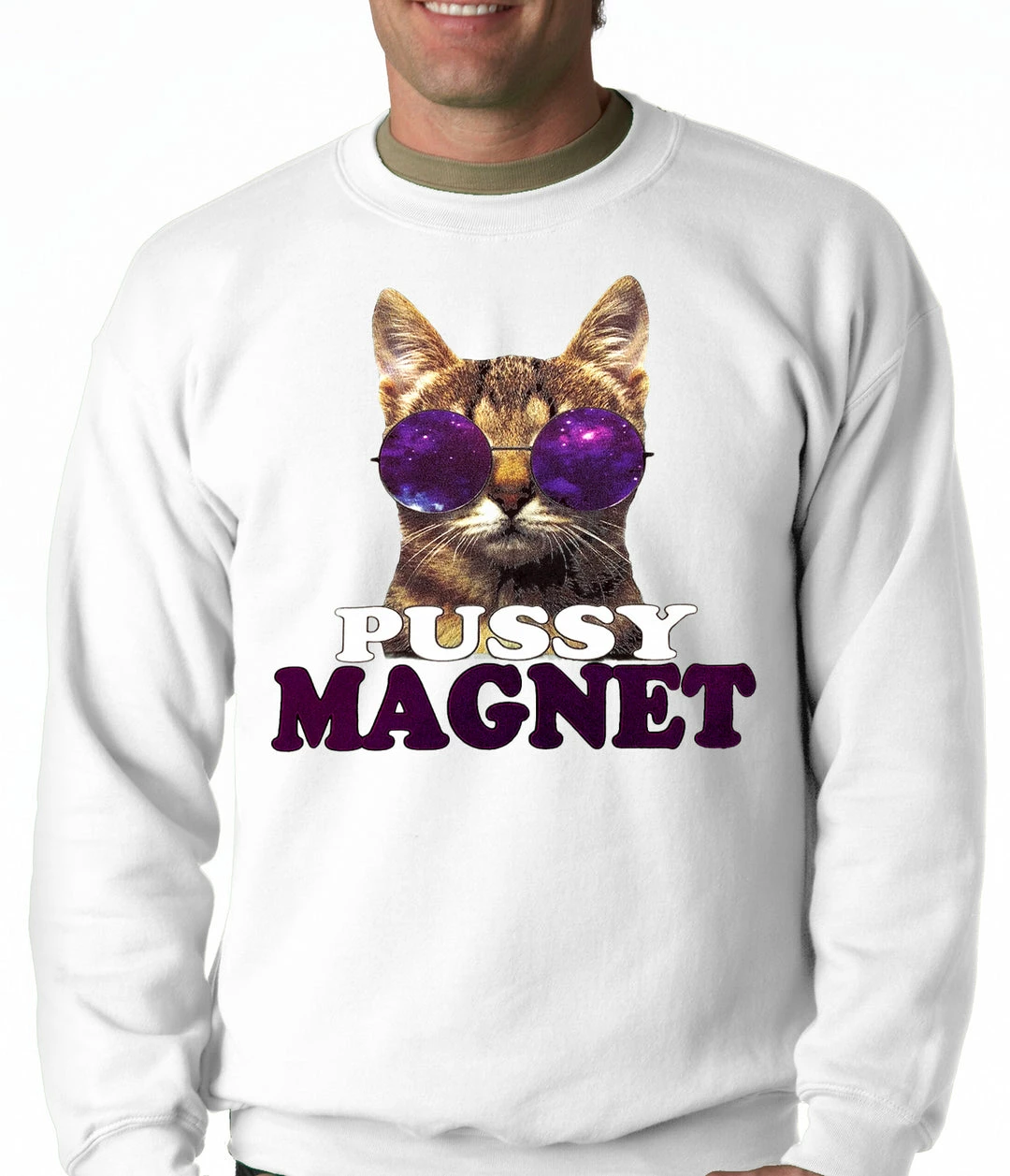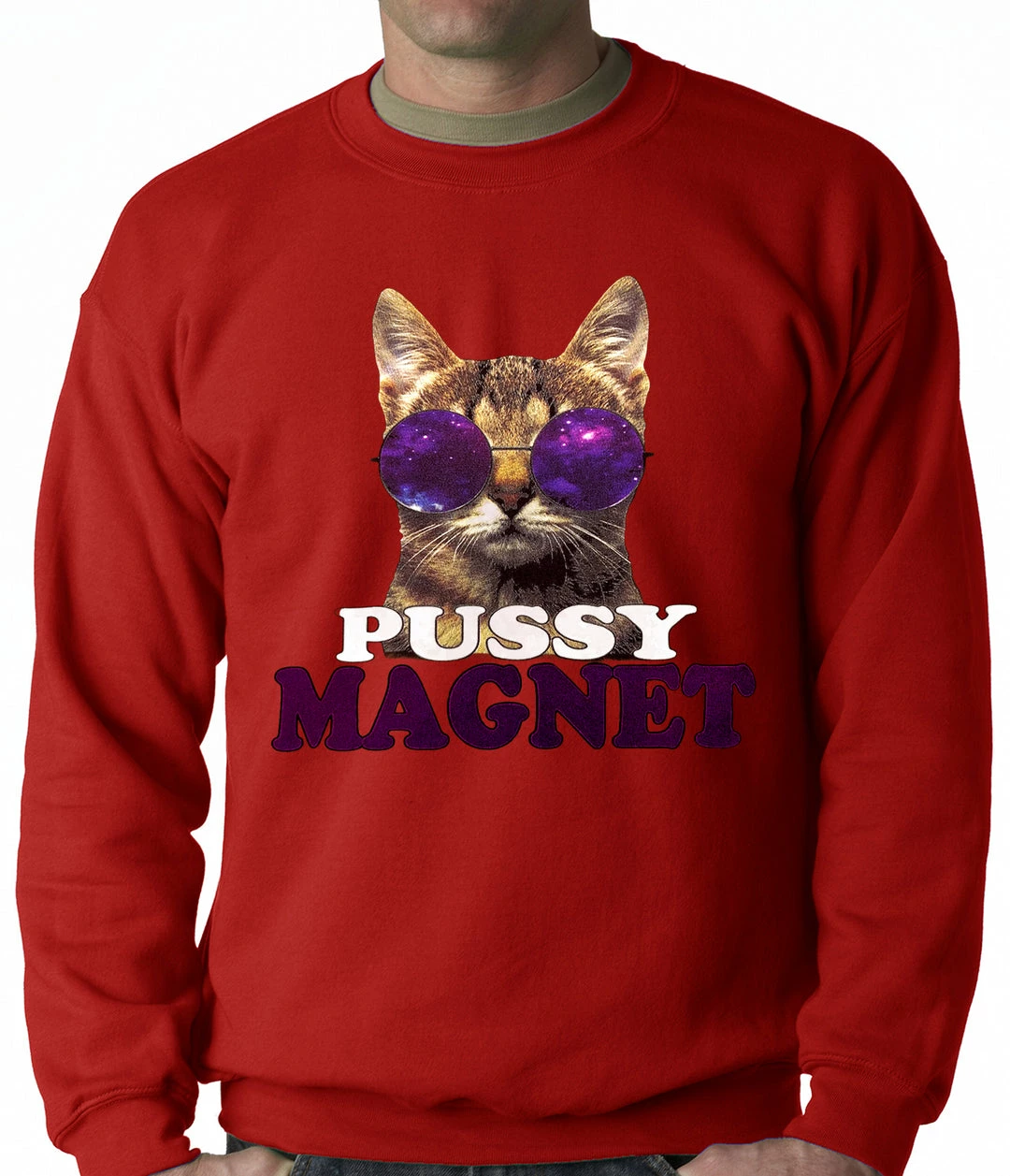 Bewild Pussy Magnet Funny Kitten Adult Crewneck