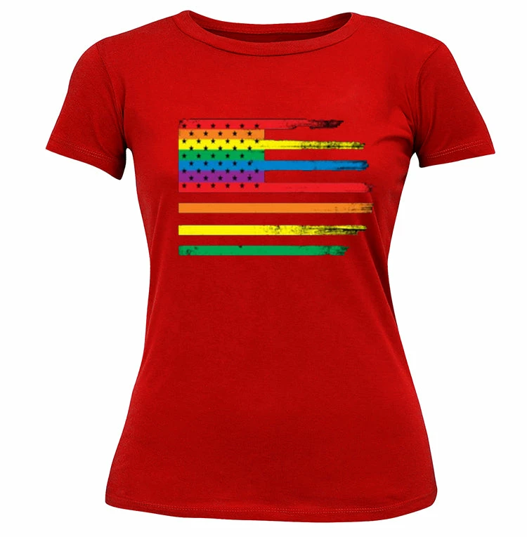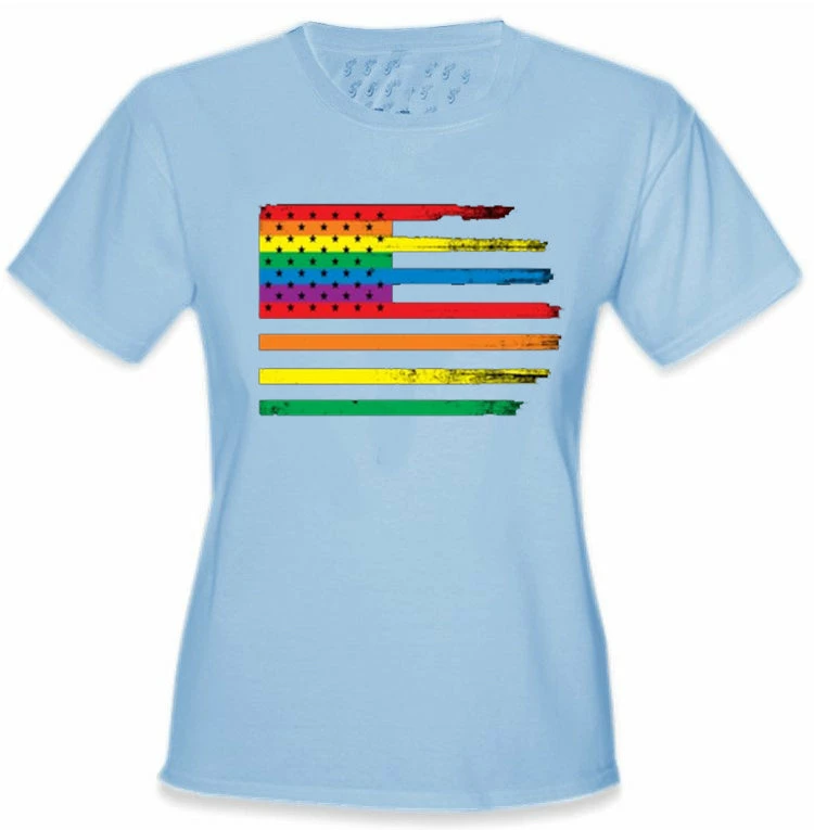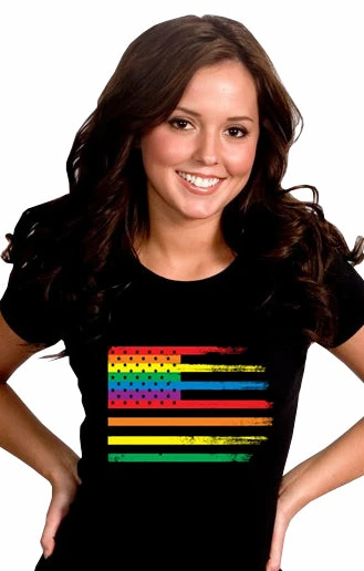 Rainbow Pride American Vintage Flag Girl’s T-Shirt. Junior Fitted shirts are a S-32″ at bust and 29″ at waist, M-34″ at bust and 30″ at waist , L36″ at bust and 34″ at waist, XL-38″ at bust and 35″ at waist.