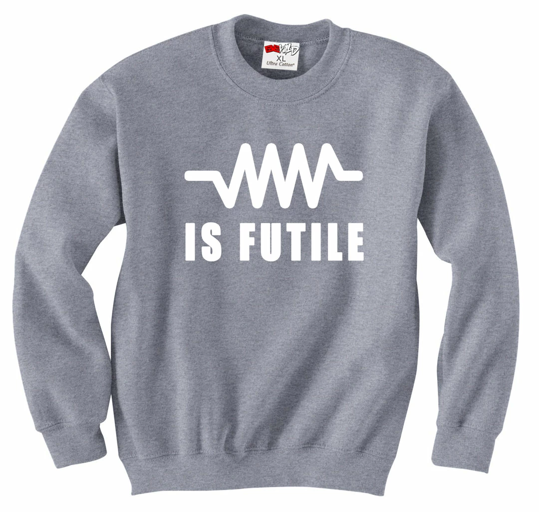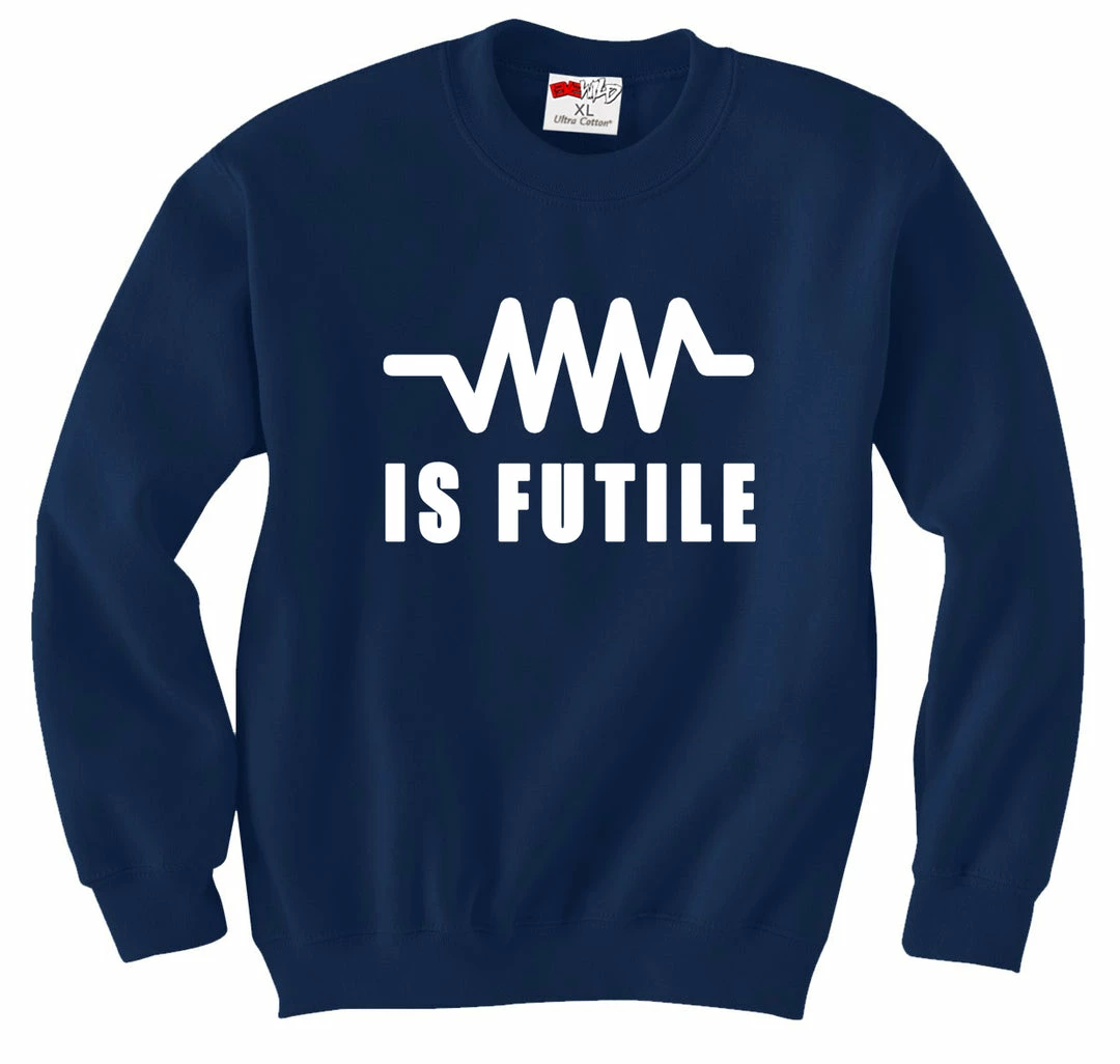 Whether you’re a math wiz or just a casual fan of Star Trek: the Next Generation, this shirt is for you! As well all learned in High School, Resistance Is Futile (at less than 1 OHM, of course). And the Borg on TNG were huge fans of letting everyone know just how futile it was. Capt. Picard of the Starship Enterprise was no stranger to this mathematical equaition either.