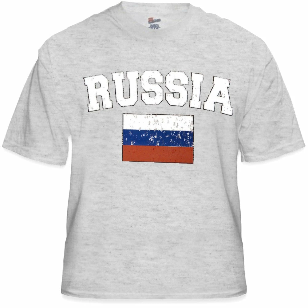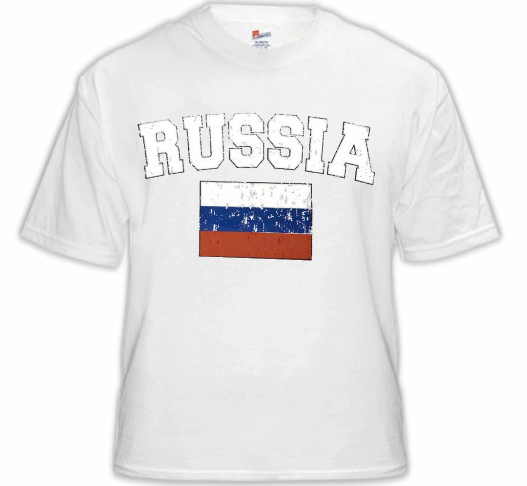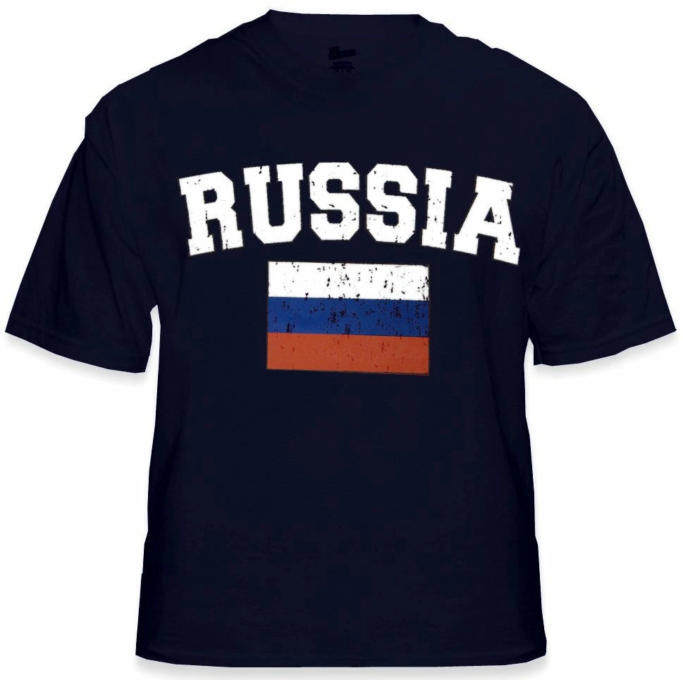 Russia Vintage Flag International Mens T-Shirt. Show pride for your favorite Nation! Our collection of deluxe vintage international print t-shirts are the perfect way to support your home country. Each shirt features premium vintage style designs made to look distressed for that soft “Favorite Old T-shirt” look from day one. These shirts are perfect whether you are rooting for your favorite soccer nation or just showing your love for a special country. Bold athletic style writing spells out each country’s name curved above the country’s national shield; a classic design that is sure to display your patriotism! Each shirt is printed to order on a deluxe Cotton tee shirt in your choice of color.