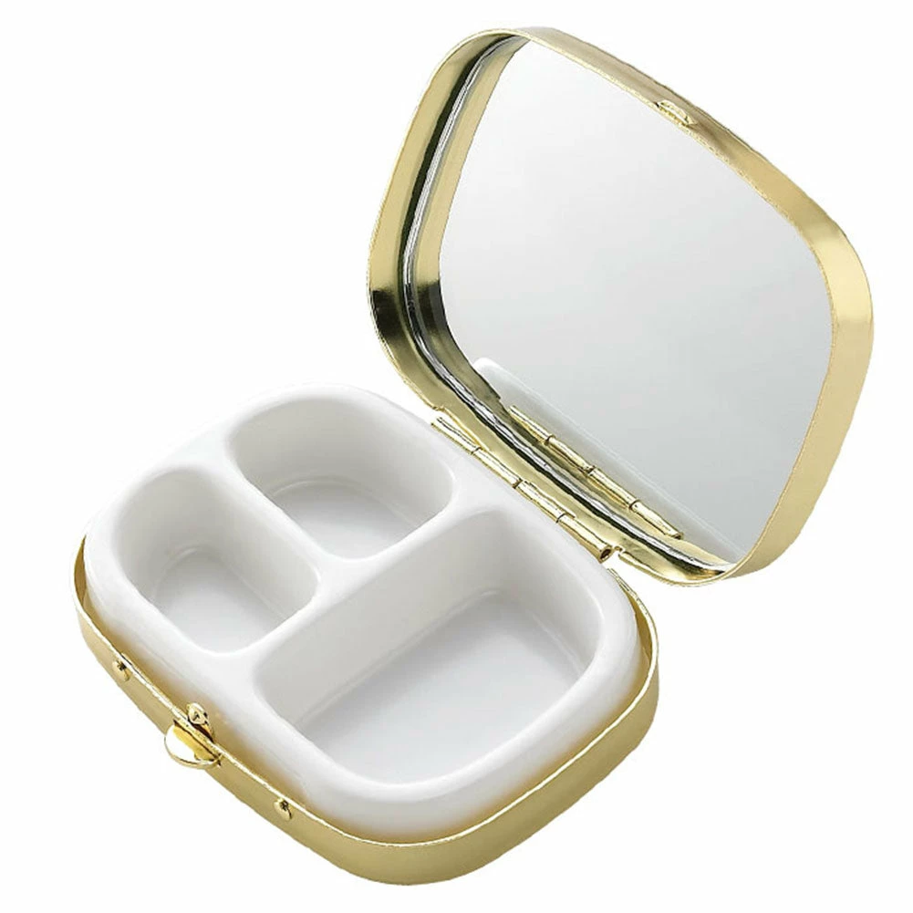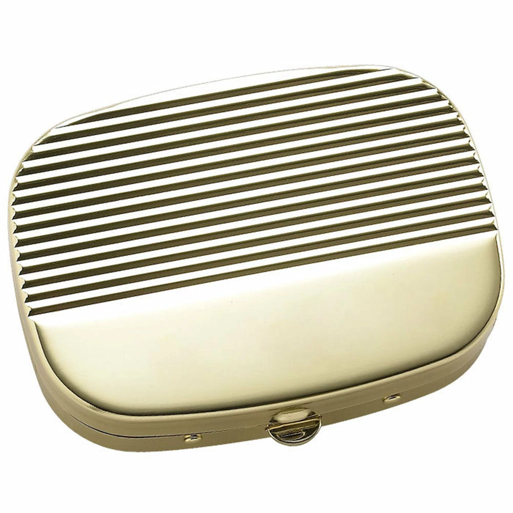 Bewild Shiny Gold Ribbed Cover With 3 Compartment Pill Box & Mirror Pill Cases