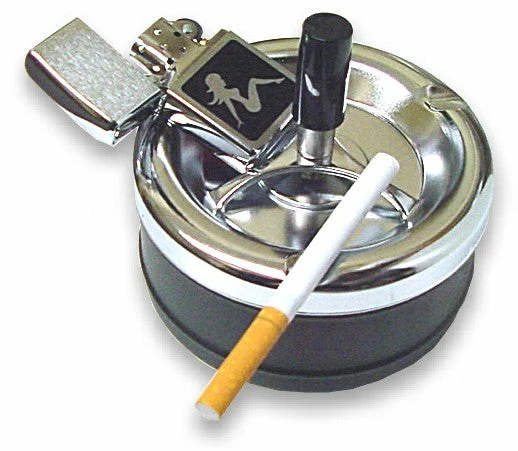 Are you tired of looking at a dirty ashtray full of dirty ashes and cigarette butts? Are the people around you tired of seeing the ashtray full all the time? We have the perfect solution to these problems. The spinning ashtray. All you do is simply press the black button at the top of the ashtray and watch all the ashes and butts disappear. The secret is in the spinner. By pressing the button the floor of the ashtray drops and spins and all the ashes fall into the bottom. Your ashtray always seems clean. If getting up to dump out the ashtray is a hassel this is the perfect item for you. With the spinning ashtray you might only have to empty once every week instead of every day. Ashtray is approx. 4.5″ in diameter and 2″ deep.
