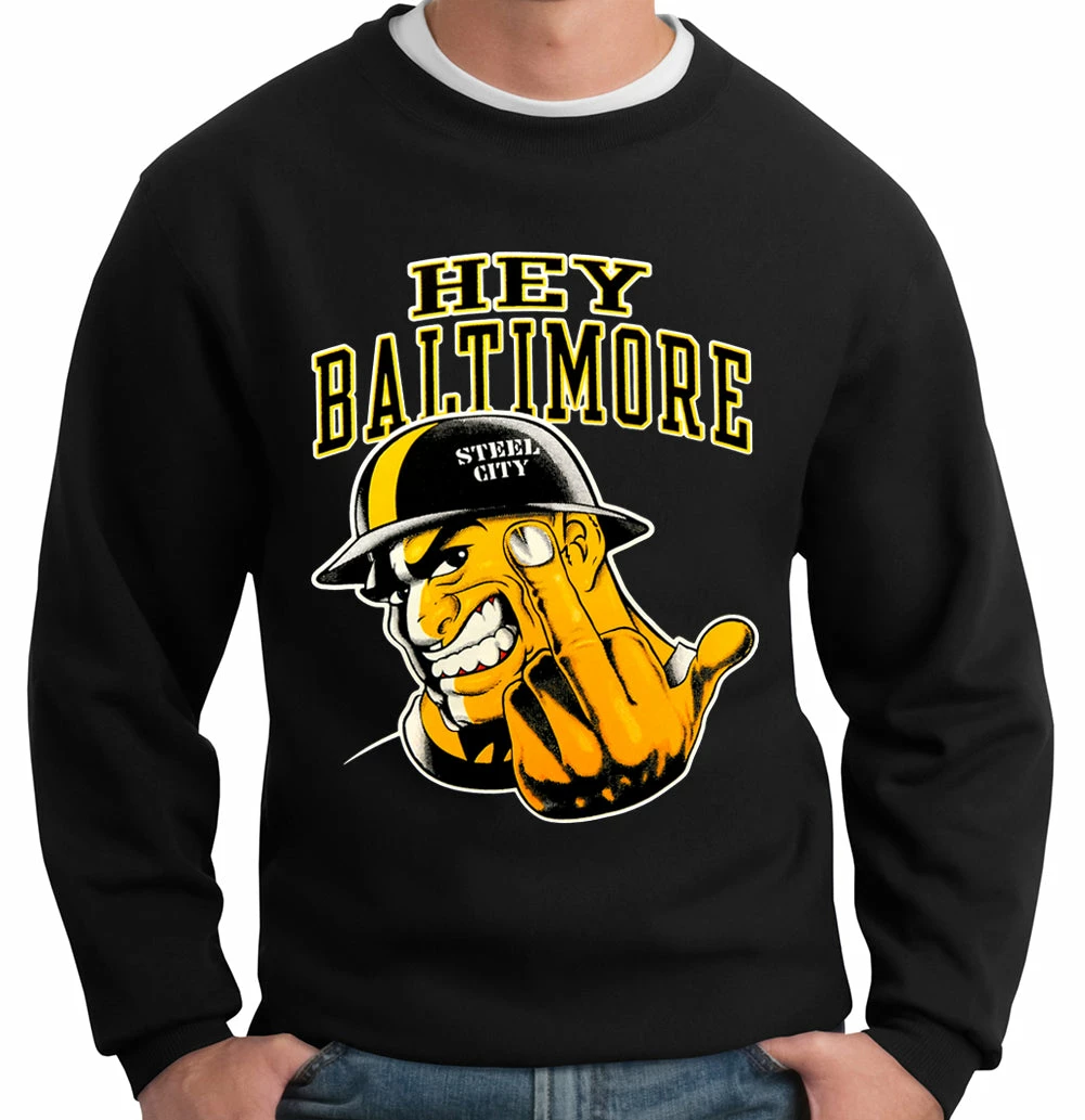 Bewild Sport Inspiration Hey Baltimore – Pittsburgh Guy With Middle Finger Adult Crewneck