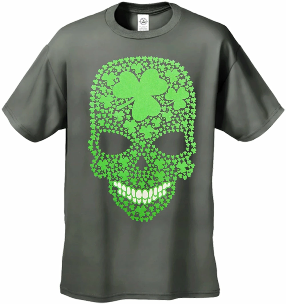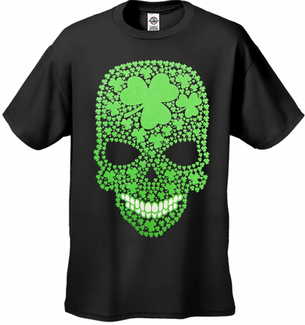 Shamrock Sugar Skull Men’s T-Shirt features a classic 100% Cotton style is a great choice for anyone’s T-shirt drawer. These Shamrock Sugar Skull Men’s T-Shirts have been printed with image on the front. These t shirts are made from heavyweight 6oz. 100% Preshrunk cotton. Looks Great, Priced right – and gets better with each washing.