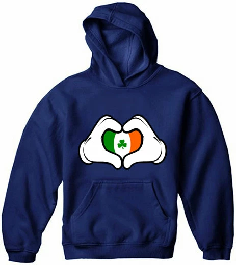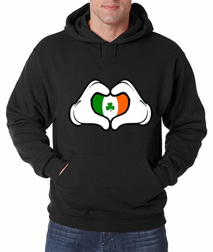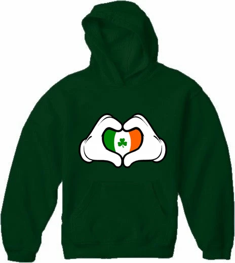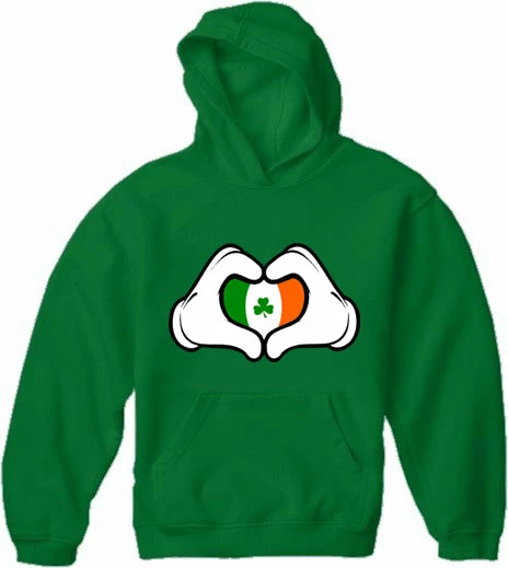 Cartoon Heart Hands Irish Flag Adult Hoodie.