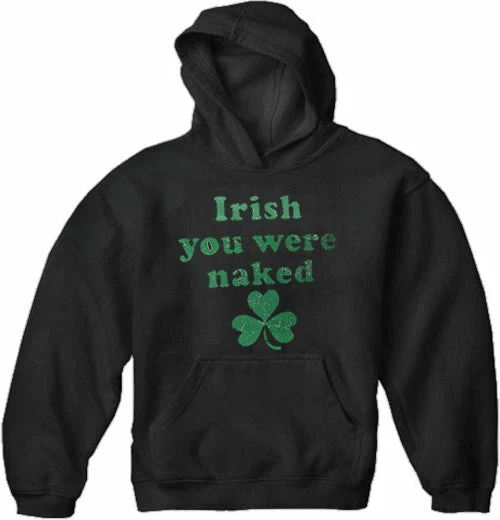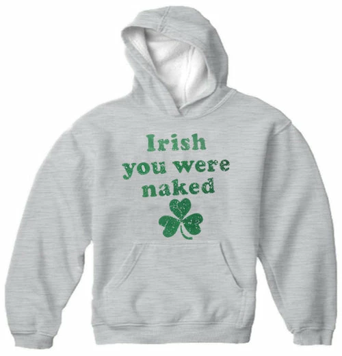 Irish You Were Naked (Dark Green Print) Adult Hoodie. A sporty hooded pullover that will always look smooth, thanks to our pill-resistant fleece.
