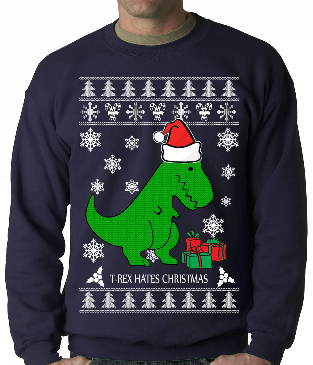 Get your hands on this amazing T-Rex Hates Christmas – Ugly Christmas Sweater Adult Crewneck Sweatshirt. All of our T-Rex Hates Christmas – Ugly Christmas Sweater Adult Crewneck Sweatshirt have a classic, comfortable fit as well as being pre-shrunk, so you can expect little to no shrinkage.