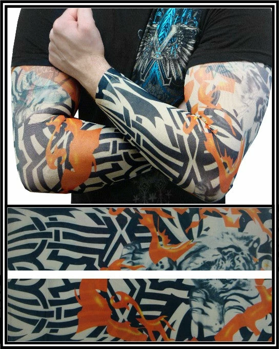 Sleeves brand temporary tattoo sleeves are taking the fashion world by storm. Tattoo sleeves are a fun, temporary alternative to permanent body art. Have you ever wondered what it would be like to have fully tattooed arms but you dont want to face the needle? These fake tattoo sleeves are for you! Tattoo Sleeves are made of a special proprietary Dermographic material that makes the “ink” appear to be actually tattooed on your skin. These tattoo sleeves work with all skin tones and effectively blend themselves in with your natural color. Best of all you can change your tattoo style every day with no cover ups, no regrets and of course no permanent effects at all! Just really cool tattoo style. This set includes two matching tattoo sleeves (one for each arm, duh!) You will find our Tattoo Sleeves are better then temporary tattoos because they will not wear out; you can use them again and again and they never fade away. Unisex One size fits all!