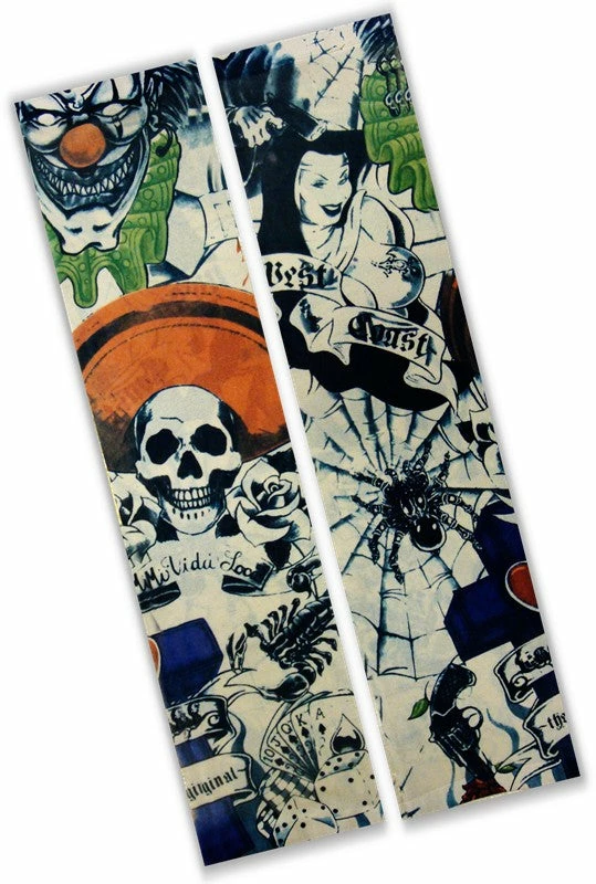 Sleeves brand temporary tattoo sleeves are taking the fashion world by storm. Tattoo sleeves are a fun, temporary alternative to permanent body art. Have you ever wondered what it would be like to have fully tattooed arms but you dont want to face the needle? These fake tattoo sleeves are for you! Tattoo Sleeves are made of a special proprietary Dermographic material that makes the “ink” appear to be actually tattooed on your skin. These tattoo sleeves work with all skin tones and effectively blend themselves in with your natural color. Best of all you can change your tattoo style every day with no cover ups, no regrets and of course no permanent effects at all! Just really cool tattoo style. This set includes two matching tattoo sleeves (one for each arm, duh!) You will find our Tattoo Sleeves are better then temporary tattoos because they will not wear out; you can use them again and again and they never fade away. Unisex One size fits all!