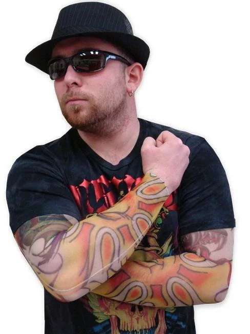 Tattoo Sleeves – Raging Sun & Dragon Tattoo Sleeves. Introducing the NEW Tattoo Sleeve fashion accessory! Anyone that wants the cool tattooed look without the commitment (and pain) of getting a permanent tattoo will love these! This design features a tiger surrounded by tribal designs.