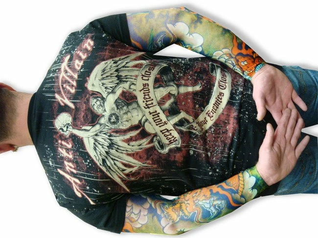 This fashion statement is a conversation piece and artwork of each piece is created by Illustrators, Painters and Tattoo artists from around the world. Our tattoos are hand printed one at a time and are of the highest quality available.