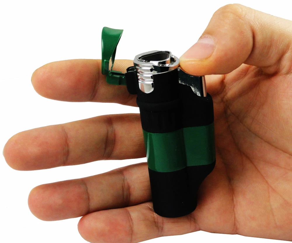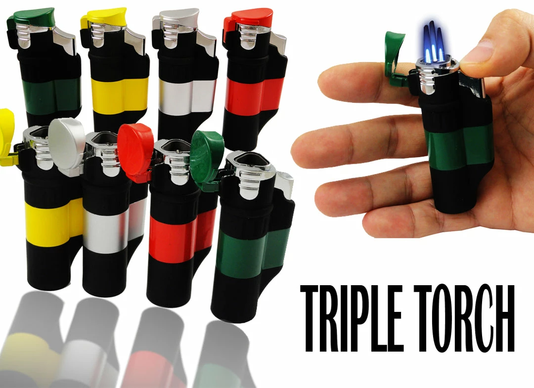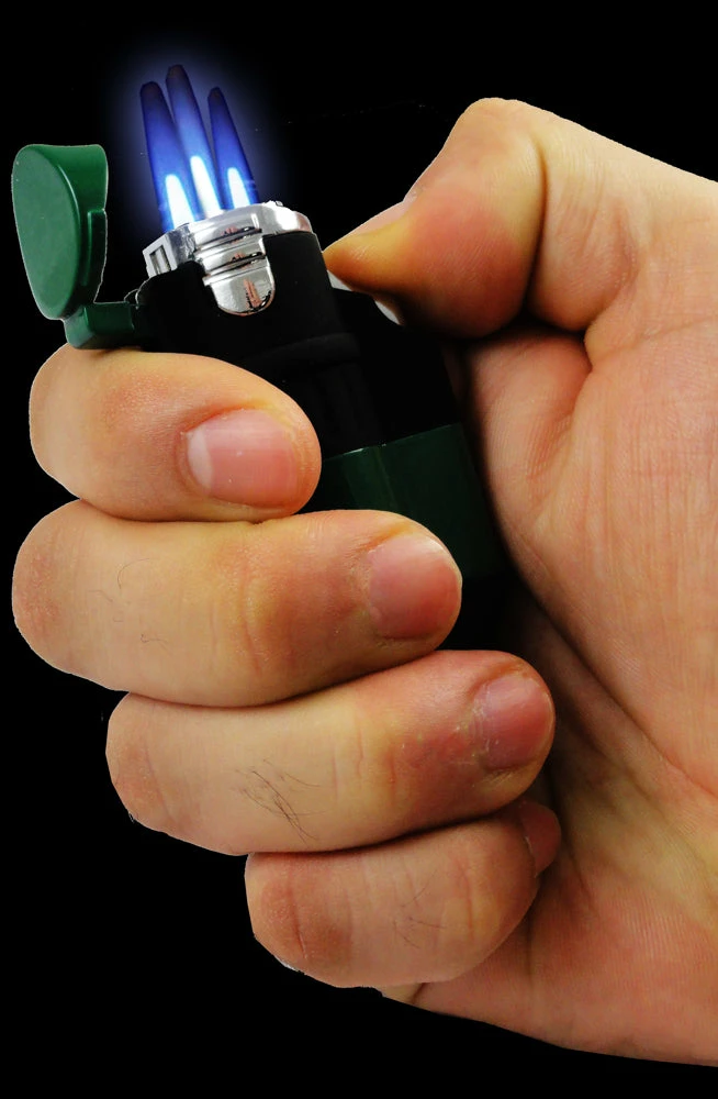 Our The Incinerator Tri-Torch Lighter is our most aggressive, powerful lighter to date. This full feature butane refillable lighter has the power you need to instantly ignite hard to light materials even in harsh conditions. Imagine being able to light a cigar outside on a windy day effortlessly. This lighter fights against the elements! Ever try to light a campfire when its raining? This lighter defeats weather conditions with its sheer power! The Incinerator Tri-Torch Lighter features: 3 powerful torch flames, electronic ignition, wind screen cap, flame power adjustment and sleek modern styling. This lighter is remarkably efficient and uses nominal butane gas despite this lighters incredible power so you can feel confident you will not run out of gas on the go. One quick click is all you need to light cigarettes, cigars, pipes and even campfires.