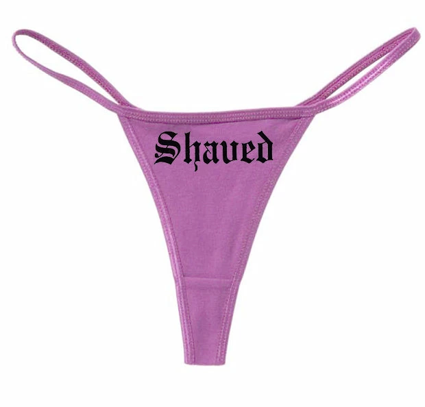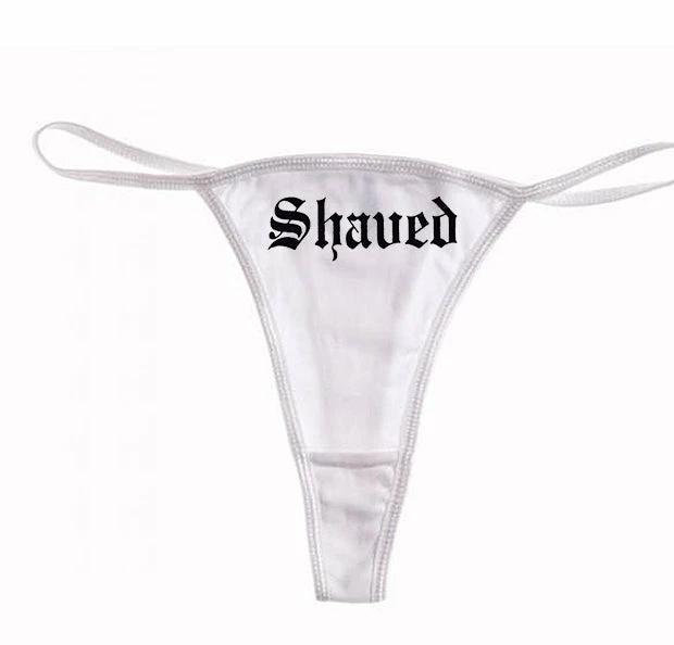 Ladies be prepared to see jaws drop with our new sexy thong underwear! Every pair of our sexy thong panties feature a funny saying like this “Shaved” Thong. The perfect addition to any intimate outfit. Of course, they look incredible all by themselves as well. All of Bewild’s thongs are Made in the USA from soft 100% cotton and are machine washable.