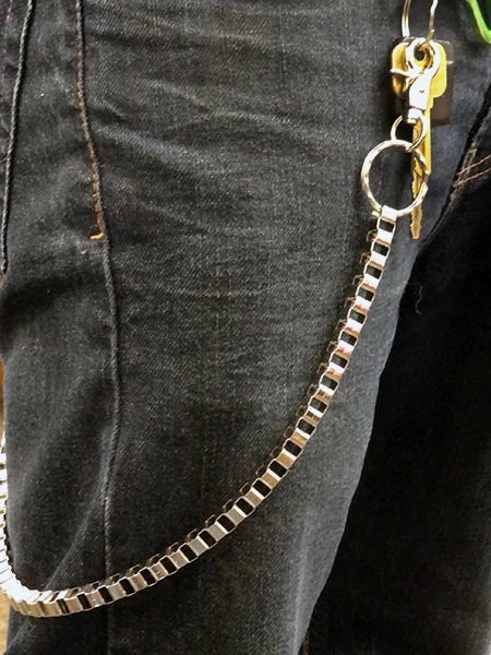 Box Link Jean & Wallet Chain. Premium quality jean chains are here at bewild! Use a jean chain as a cool accent to any pair of jeans or use them as a stylish addition for any chain wallet. Never lose your keys! Our jean chains feature a heavy duty key loop perfect for attaching your keys. Your keys will always be safe by your side, impervious to theft and loss. This chain measures approximately 30″ in length end-to-end. Both ends of this jean chain are easy to remove for fast access to your keys or wallet. These jean chains will change the look of your jeans and your style and can be easily removed and re attached so you can wear them with ANY pair of pants!