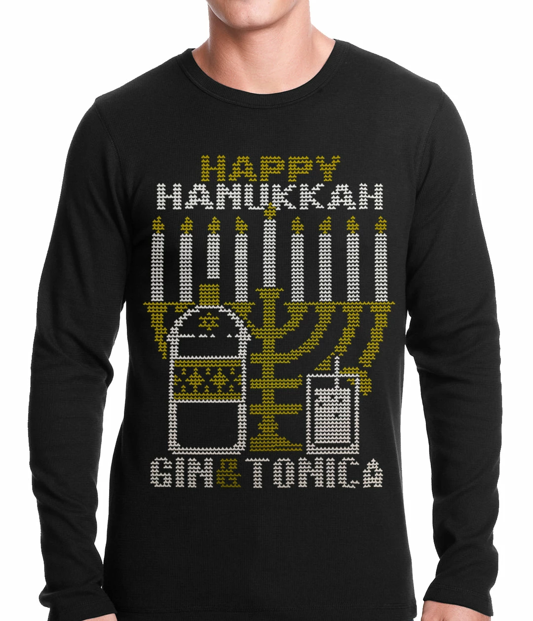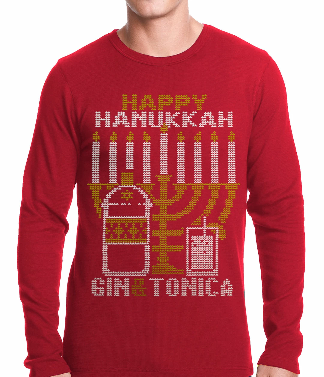 Bewild Ugly Hanukkah Thermal – Gin And Tonica Golden Menorah Ugly Hanukkah Thermal Shirt Holiday Prints