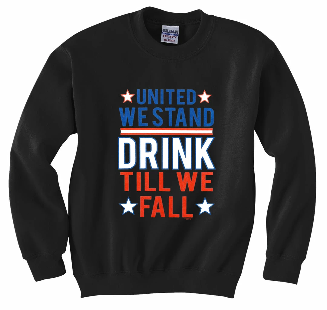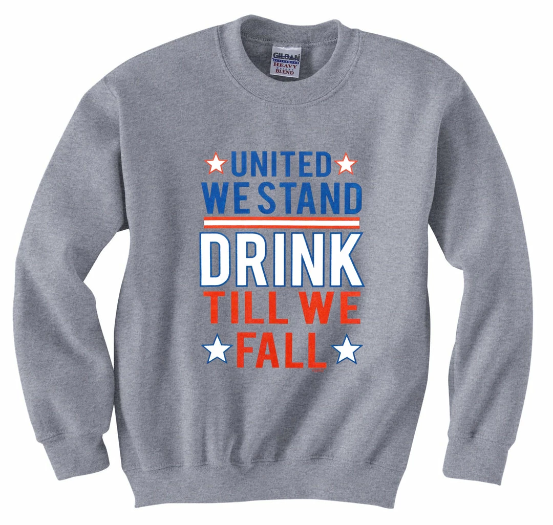Bewild United We Stand Drink Till We Fall Crewneck Sweatshirt Cool Funny & Offensive