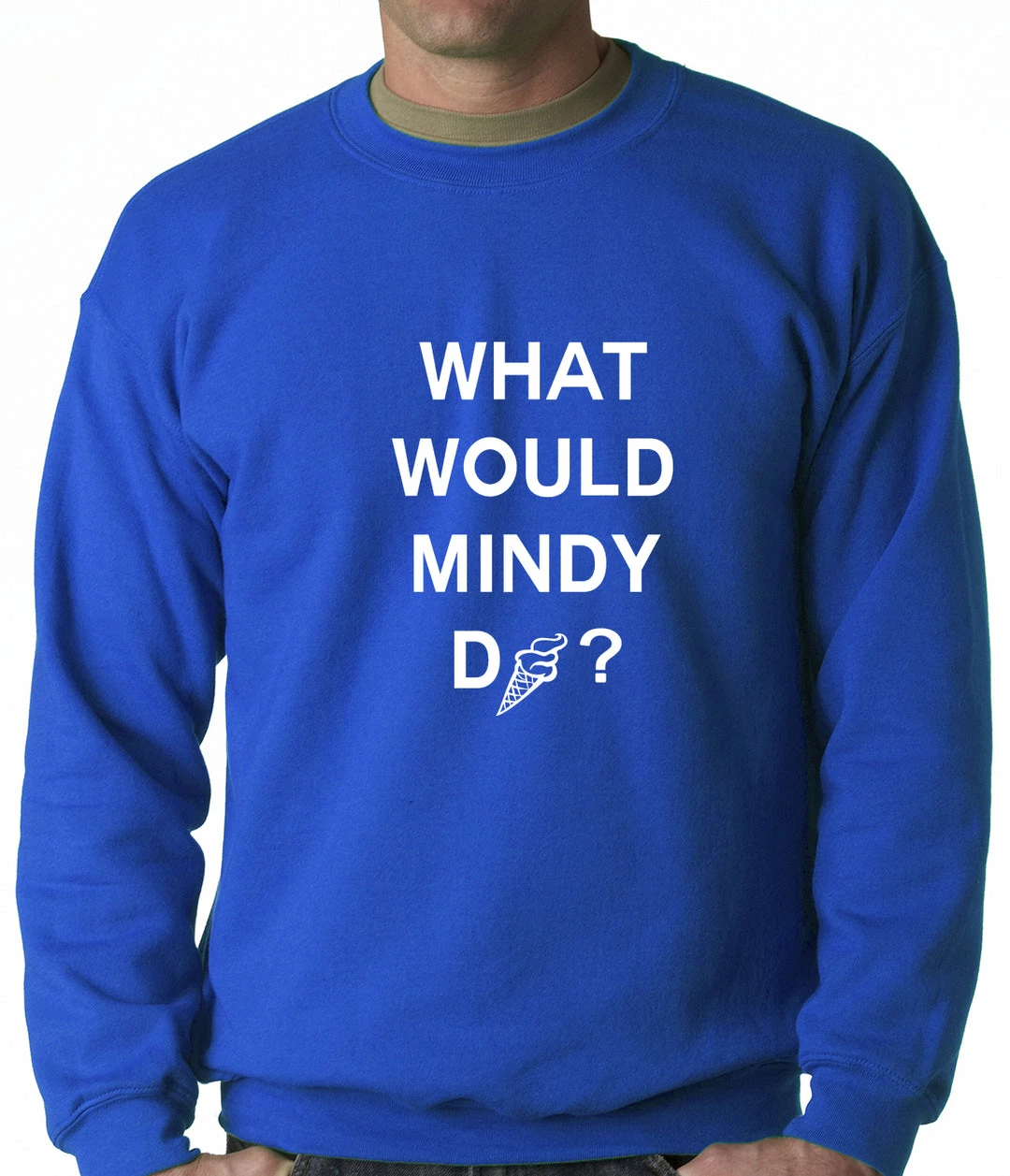 Bewild What Would Mindy Do? Eat Ice Cream Adult Crewneck Cool Funny & Offensive