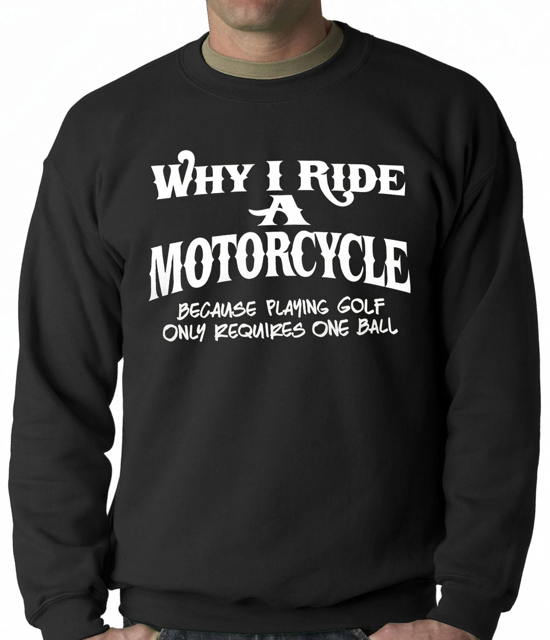Get your hands on this amazing Why I Ride a Motorcycle sweatshirt. All of our Why I Ride a Motorcycle crewneck sweatshirts have a classic, comfortable fit as well as being pre-shrunk, so you can expect little to no shrinkage.