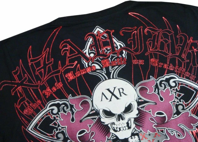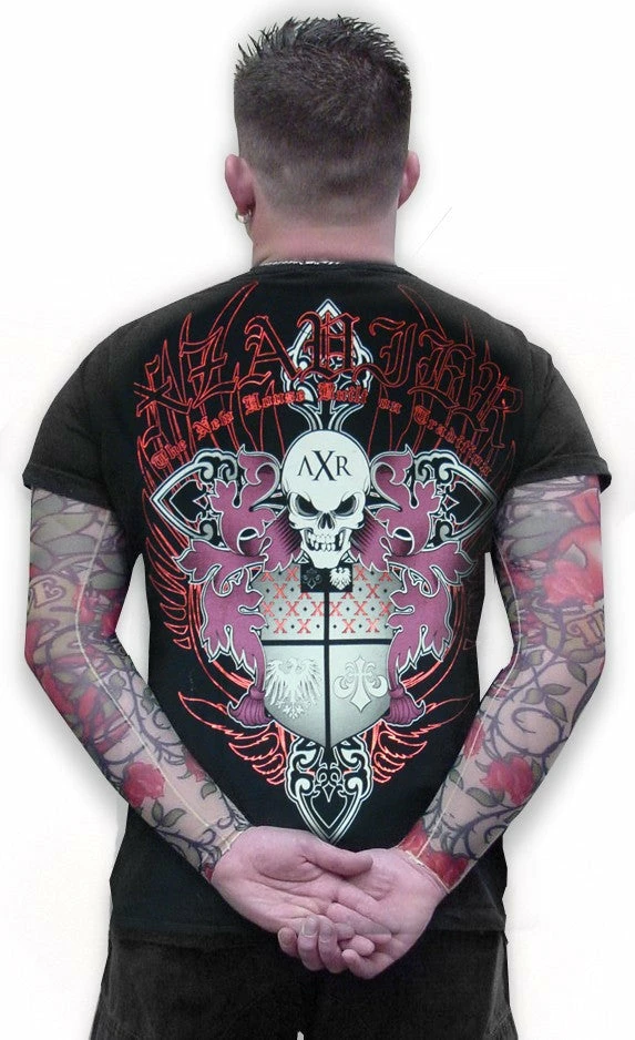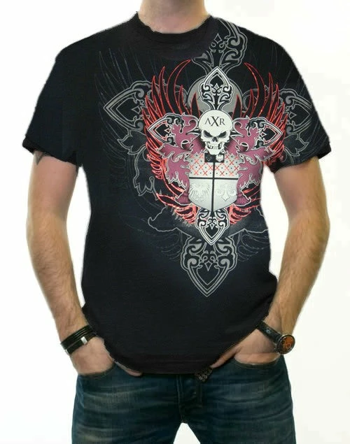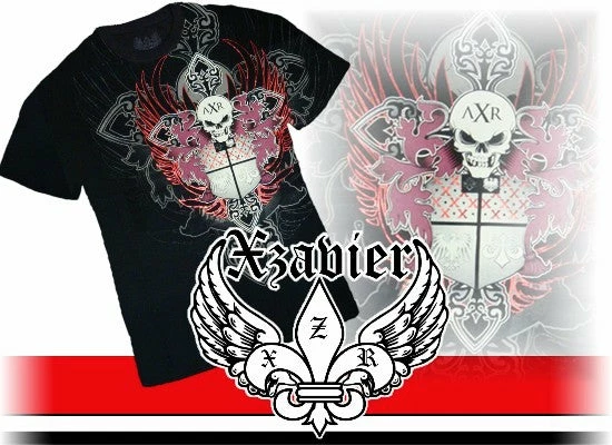 Xzavier “AXR Crest” T-Shirt. Decorate your self with this war-torn Xzavier style. Xzavier Da Grind Clothing comes at you packin’ heat with hardcore designs inspired by the Gothic Renaissance, Middle Age Warfare and chivalry to every man. The Xzavier Motto: “Know thy enemy. Respect thy Enemy. DESTROY THY ENEMY.” Whether you are an MMA Master or a soldier in the war of life you will find Xzavier clothing embraces you to conquer “da grind” of society & assist you in your rebellion of the mundane.