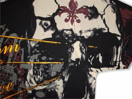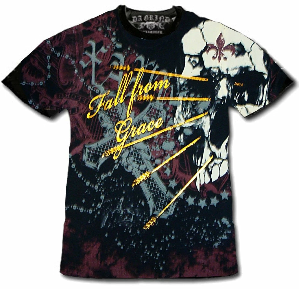 Xzavier Da Grind “Fall From Grace” T-Shirt. Decorate your self with this war torn Xzavier Style. This black shirt features the “Fall From Grace” Crest accented in Golden Foil. The print sits atop a grunge marble splatter background. The Back of the shirt features fall from grace Logo . Enjoy this shirt if you dare.