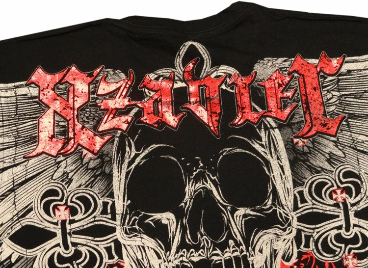 Xzavier “Eye of the Beholder” T-Shirt. Decorate your self with this war-torn Xzavier style. Xzavier Da Grind Clothing comes at you packin’ heat with hardcore designs inspired by the Gothic Renaissance, Middle Age Warfare and chivalry to every man. The Xzavier Motto: “Know thy enemy. Respect thy Enemy. DESTROY THY ENEMY.” Whether you are an MMA Master or a soldier in the war of life you will find Xzavier clothing embraces you to conquer “da grind” of society & assist you in your rebellion of the mundane.