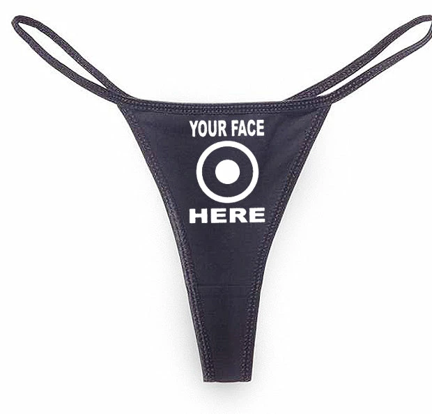 Ladies be prepared to see jaws drop with our new sexy thong underwear! Every pair of our sexy thong panties feature a funny saying like this “Your Face Here” Thong. The perfect addition to any intimate outfit. Of course, they look incredible all by themselves as well. All of Bewild’s thongs are Made in the USA from soft 100% cotton and are machine washable.