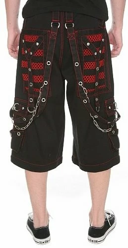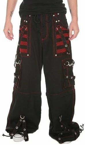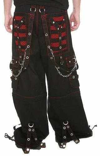 Tripp NYC “Armageddon” Bondage Pants. These pants have it all, Chrome Steel Chains, metal zippers, worn steel accents and super unique black and Red material. Tripp NYC “Armageddon” Bondage Pants Feature deep front pockets, oversized back pockets and decorated cargo pockets and have enough storage to fit all your goodies and baddies. All the straps on the Tripp NYC “Armageddon” Bondage Pants are removable, just in case you want to tone down the look, but why would you want to do that? Draw sting waist and bottoms mean the pants are going to fit you PERFECT. Need we say more?