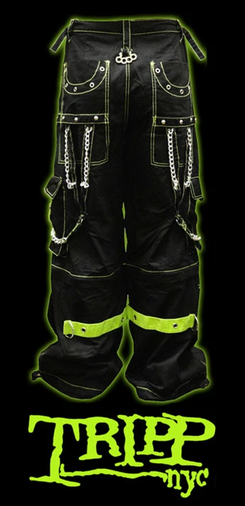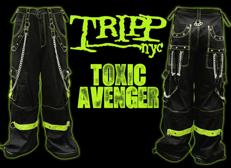 Tripp NYC “Toxic Avenger” Bondage Pants (Black/Neon Green).